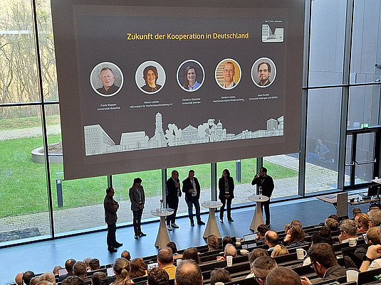 Das Programm der Tagung bot über zwei Tage hinweg ein vielfältiges Spektrum an Vorträgen, Keynotes und Panels zu aktuellen Themen der Hochschul-IT. Die Beiträge griffen viele verschiedene Aspekte der digitalen Infrastruktur für Forschung und Lehre auf und behandelten unter anderem Entwicklungen in den Bereichen KI, IT-Infrastruktur, digitale Dienste und Informationssicherheit sowie Ansätze für Zusammenarbeit und Servicebereitstellung an Hochschulen. Die unterschiedlichen Formate ermöglichten sowohl vertiefende Einblicke in konkrete Projekte und technische Lösungen als auch übergreifende Diskussionen zu strategischen Fragestellungen der Digitalisierung im Wissenschaftsumfeld. Das Programm wurde durch Vorträge und Panels geprägt, die unter dem Motto der Tagung „Vernetzt handeln, gemeinsam wirken“ standen. Dabei wurden die Vorteile und Herausforderungen von Koordination, Kooperation und Kollaboration anhand von Praxisbeispielen sowie der Zusammenarbeit in Verbünden aufgezeigt und reflektiert. Zugleich wurden die Unterschiede zwischen den verschiedenen Konzepten und Ansätzen der Zusammenarbeit herausgearbeitet. Unter den Teilnehmenden bestand Einigkeit darüber, dass sich Zusammenarbeit in jedem Fall lohnt und auszahlt.