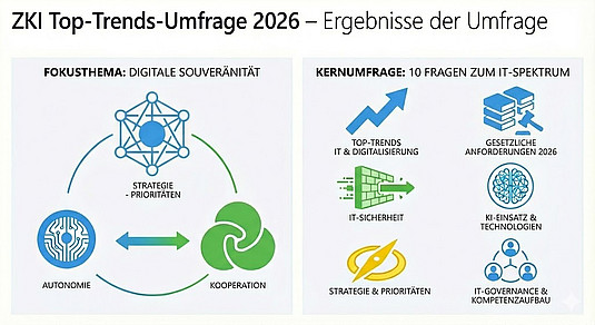 Die ZKI-Top-Trends-Umfrage 2026 arbeitet eine IT-Landschaft heraus, die sich zwischen technologischer Transformation sowie Sicherheits- und Souveränitätsbestrebungen positioniert. Als zentrale Handlungsachsen lassen sich hierbei Künstliche Intelligenz (KI) und IT-Sicherheit identifizieren.
